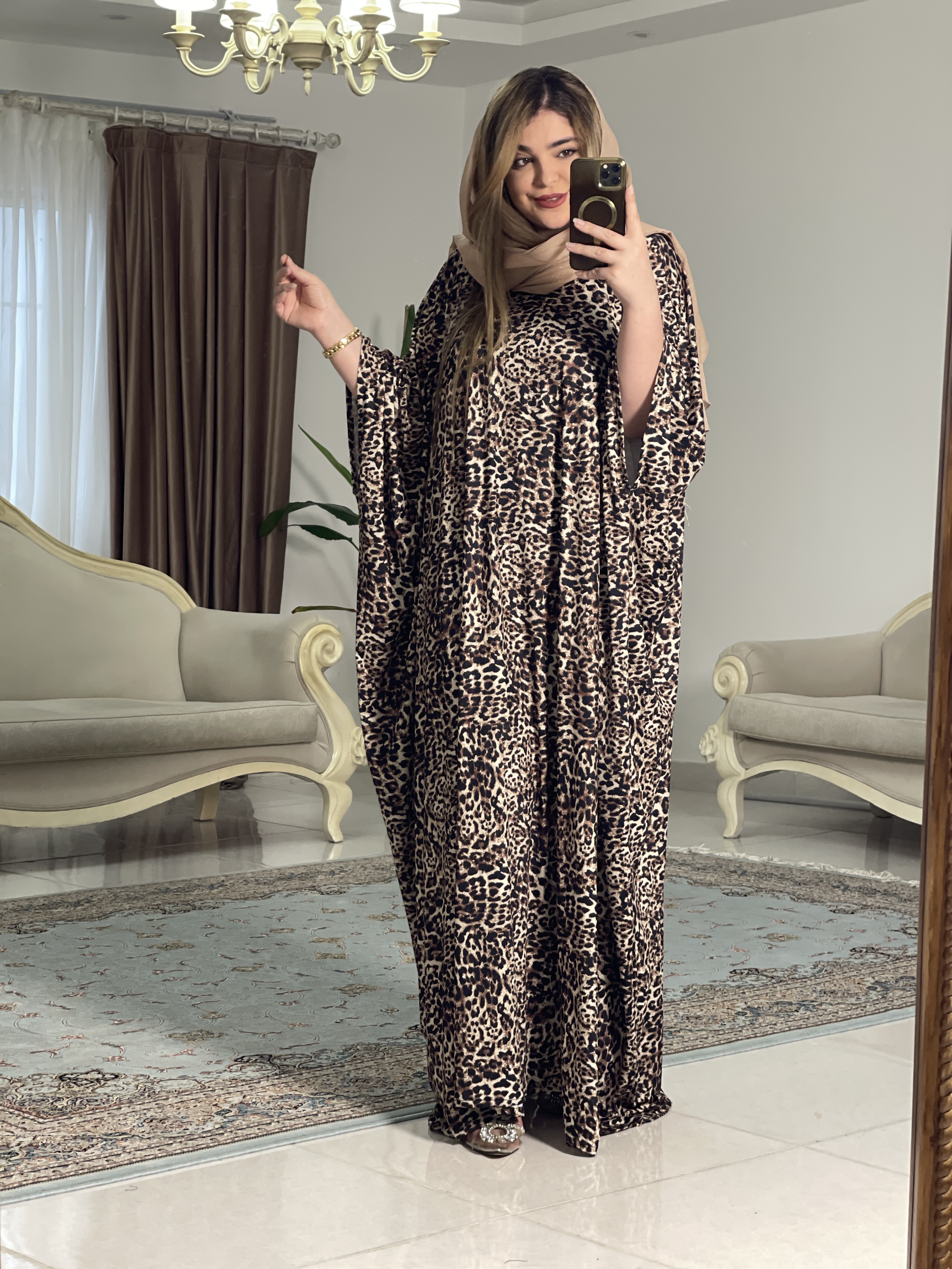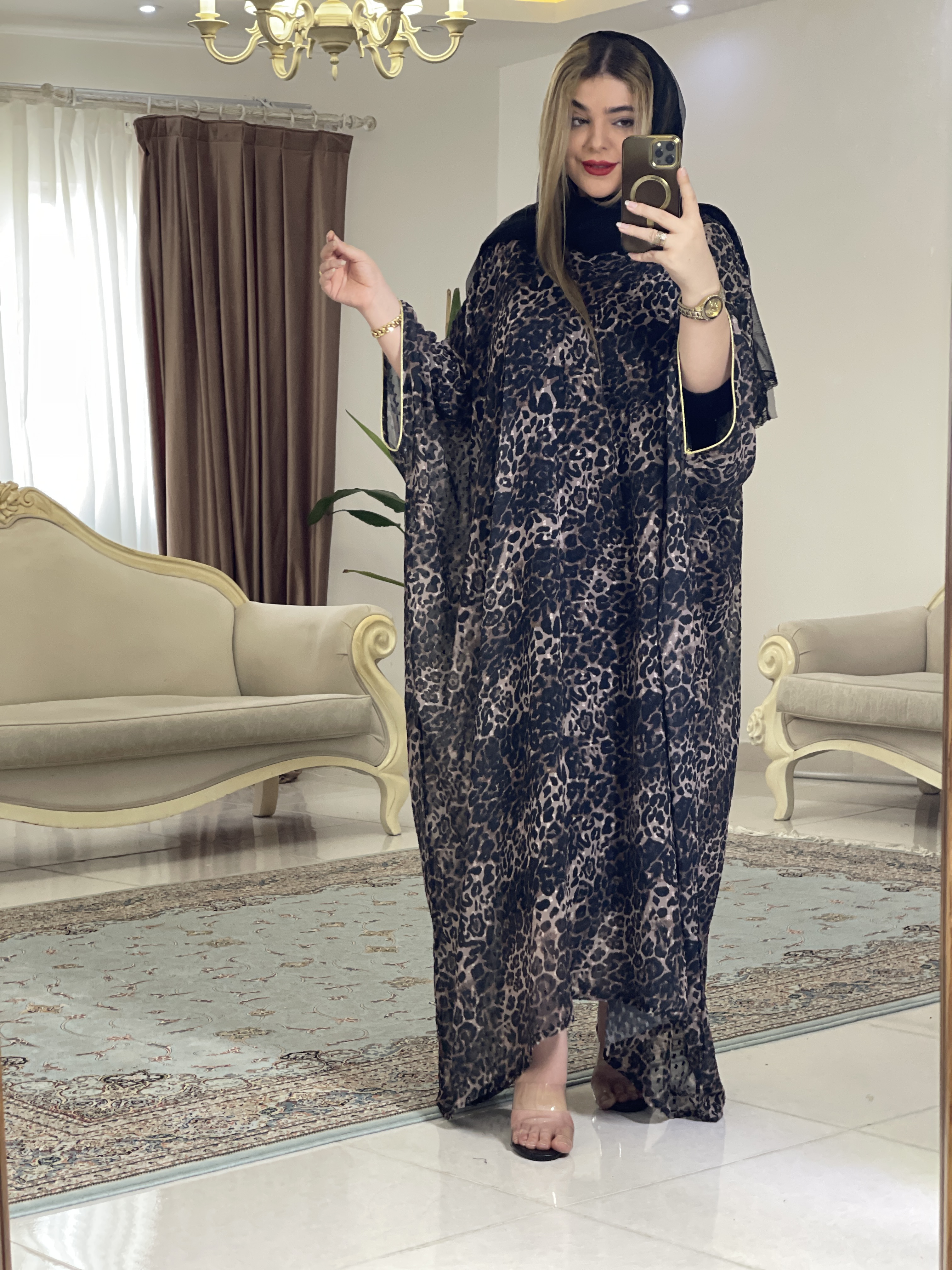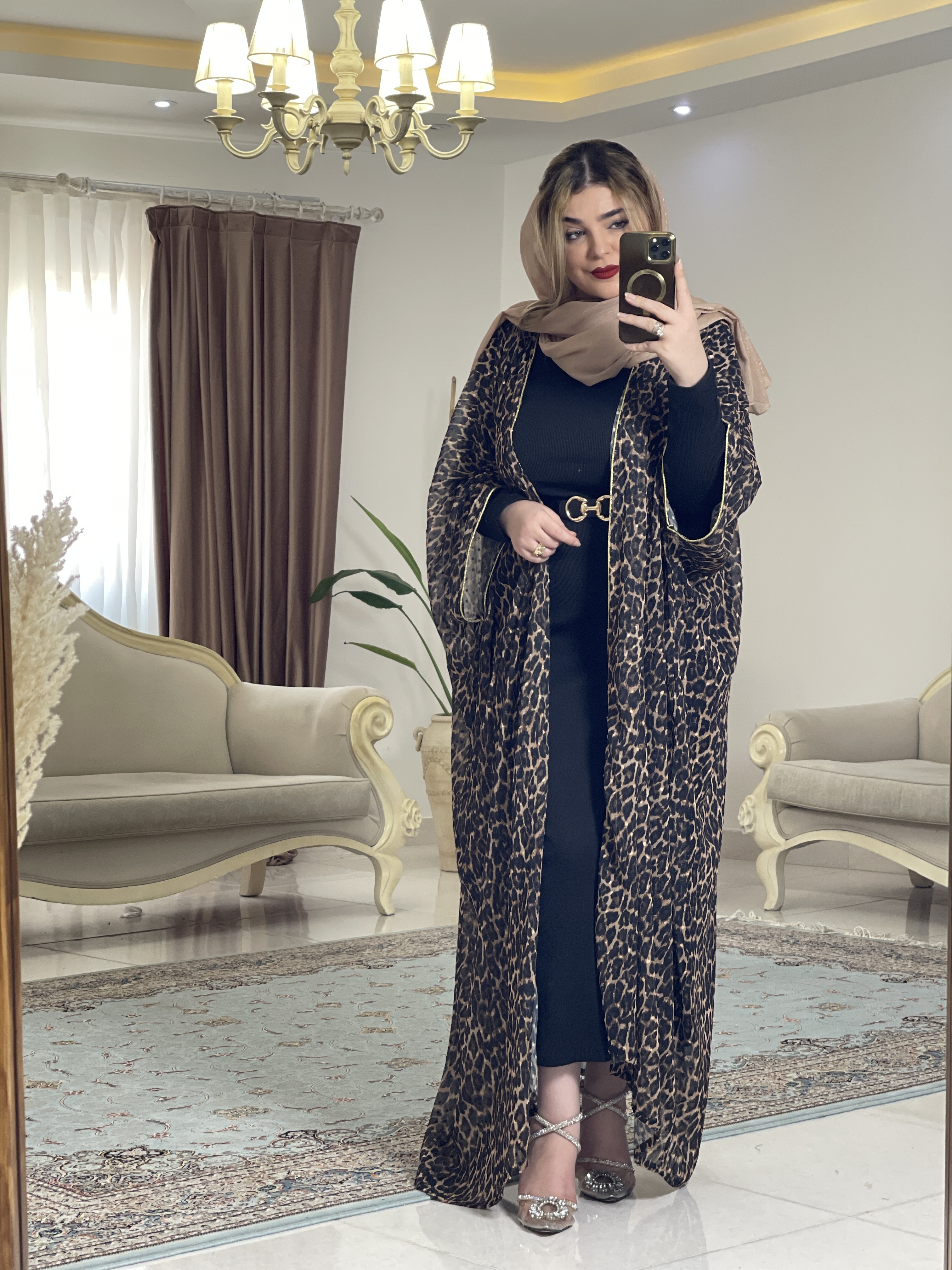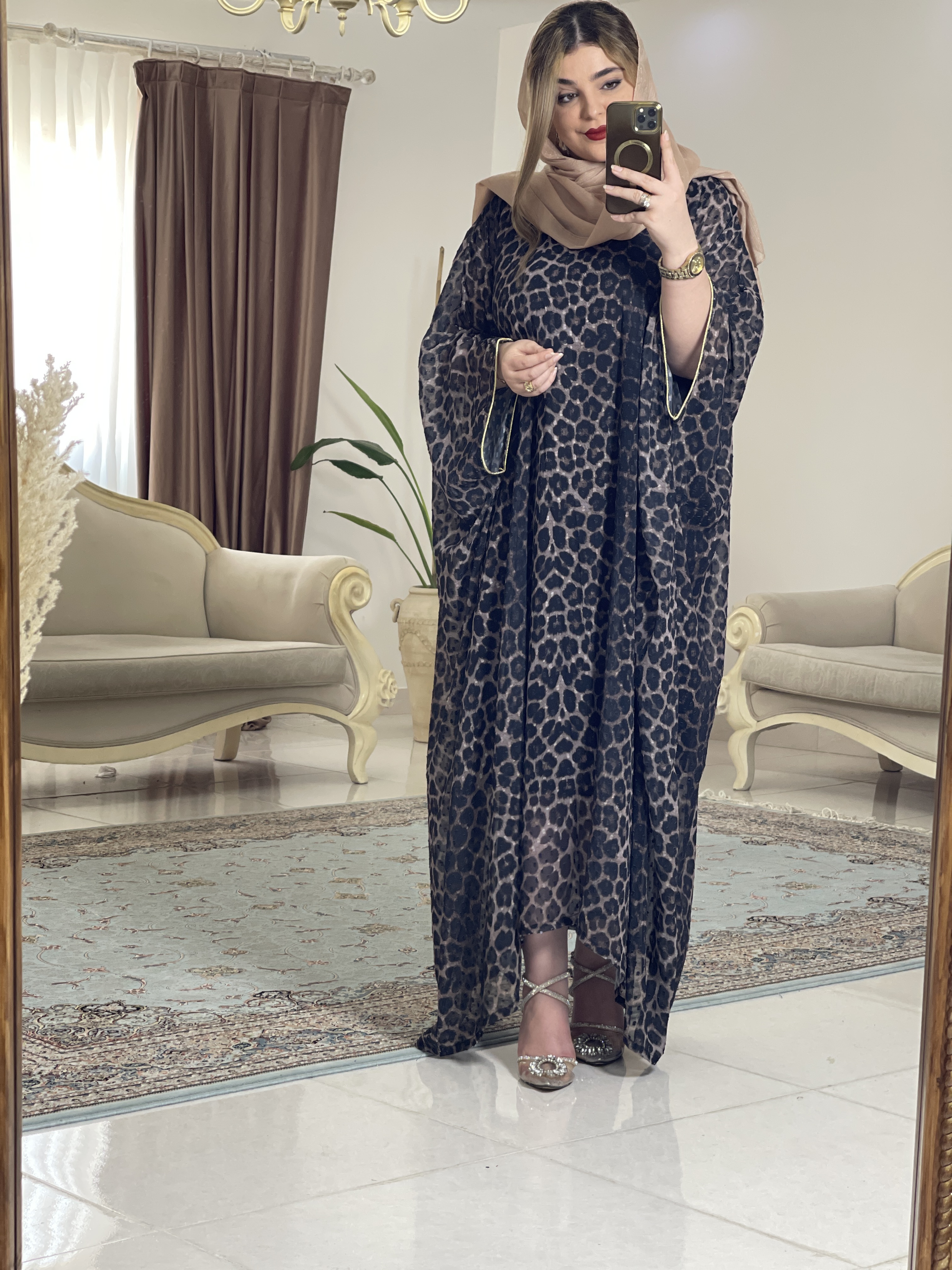 مانتو عبای کرپ حریر پلنگی زنانه