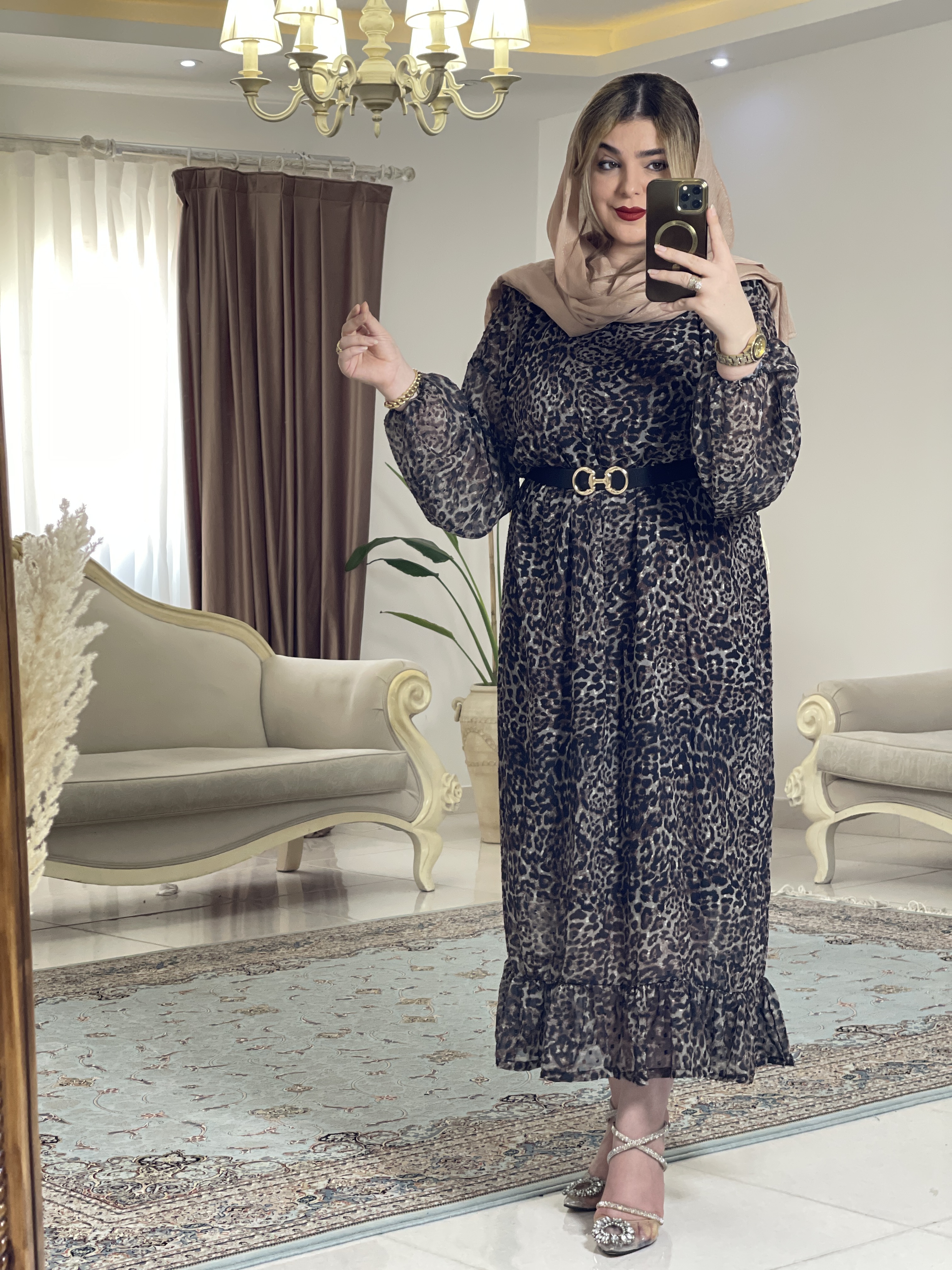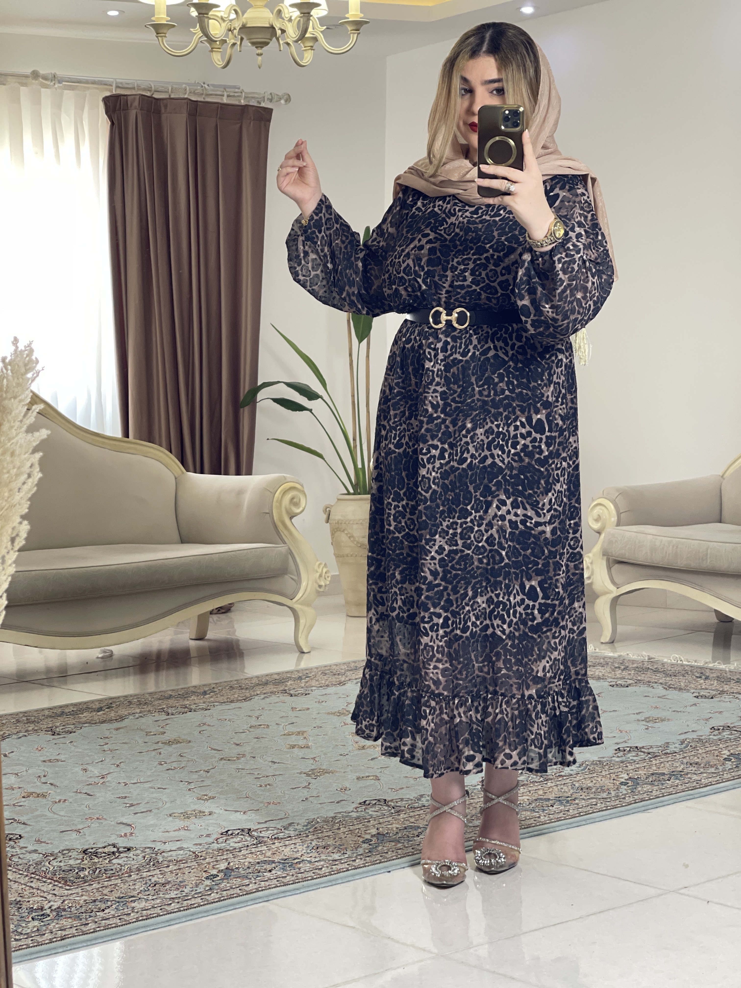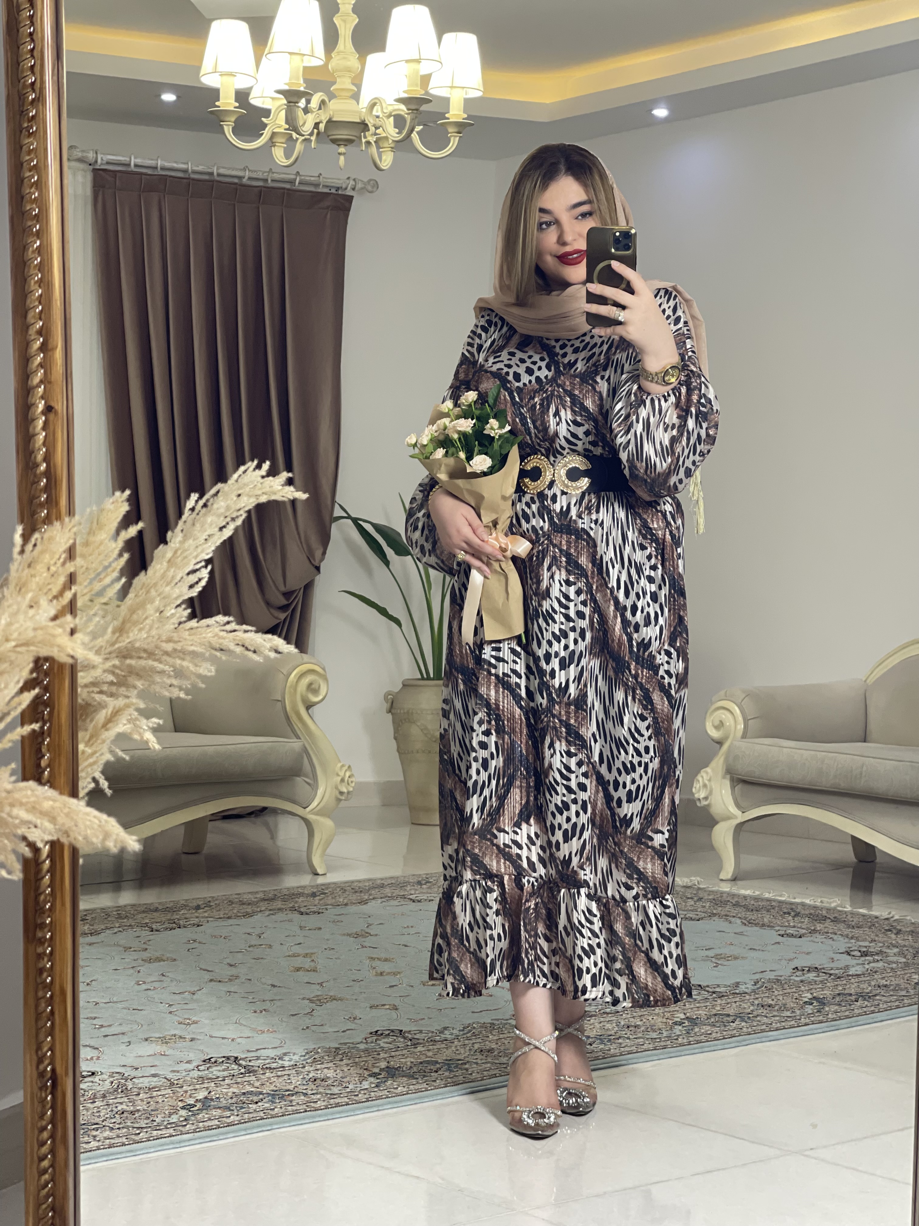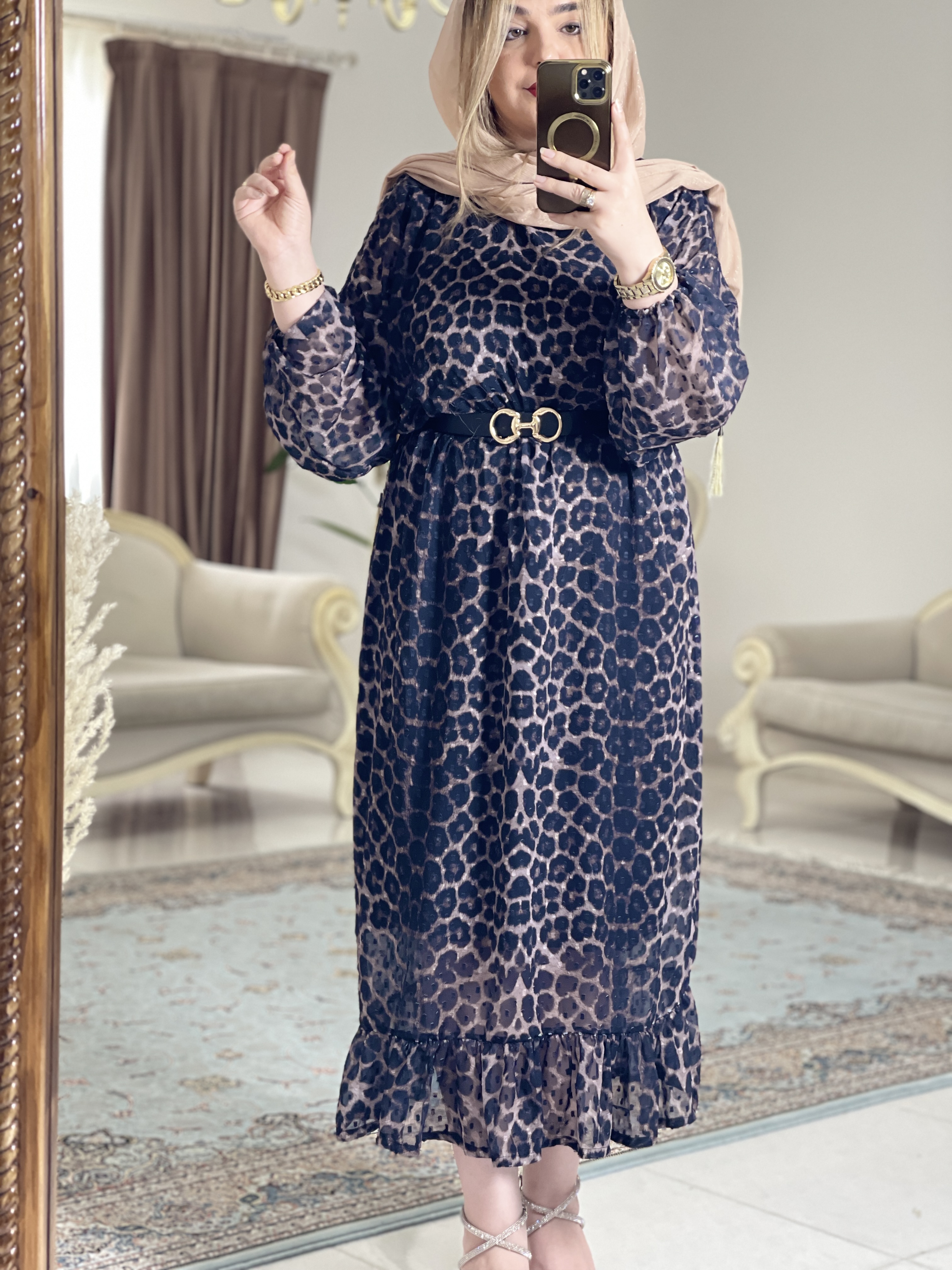 مانتو عبای کرپ حریر پلنگی زنانه