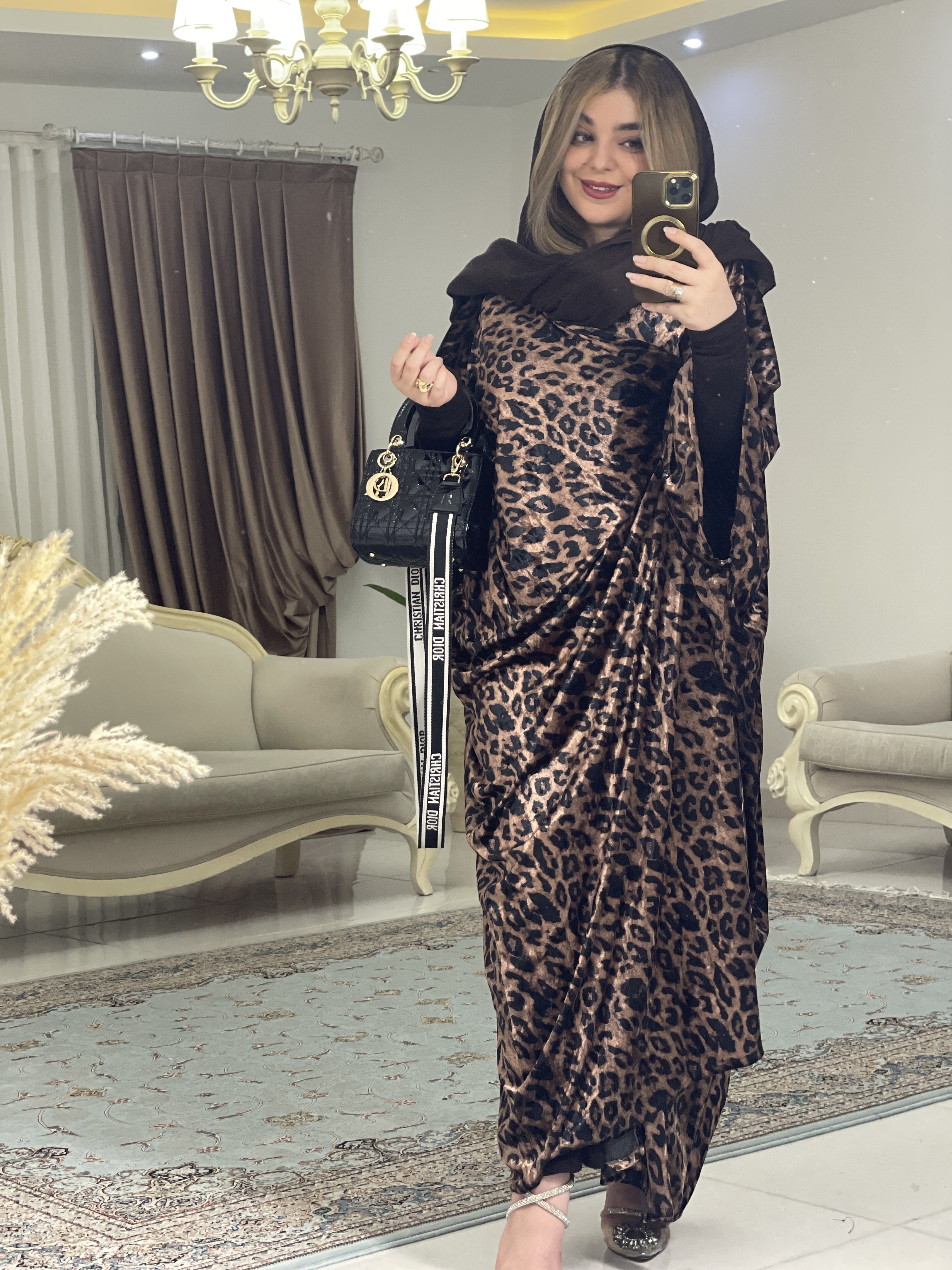 عبای مخمل پلنگی جلوباز زنانه