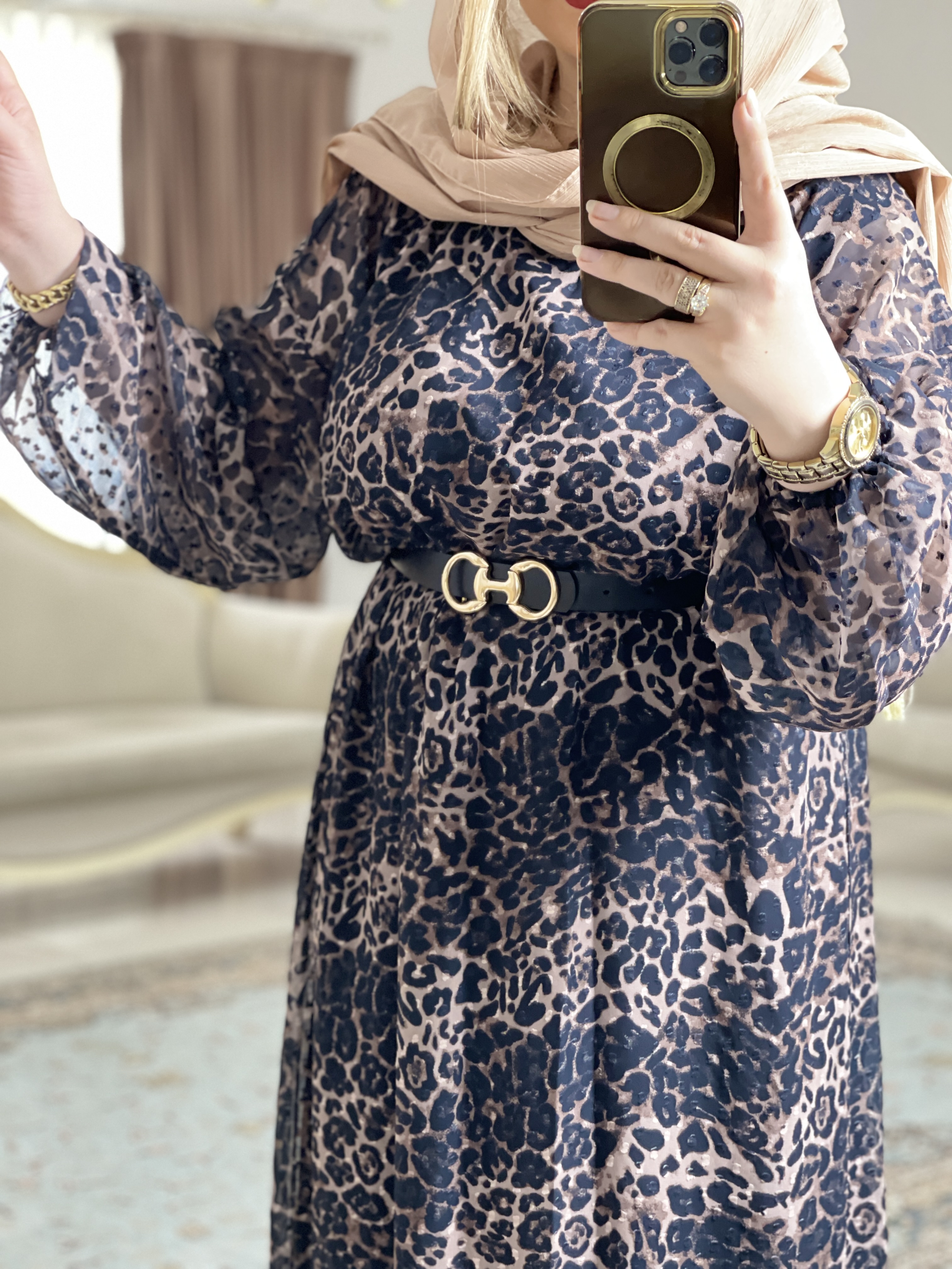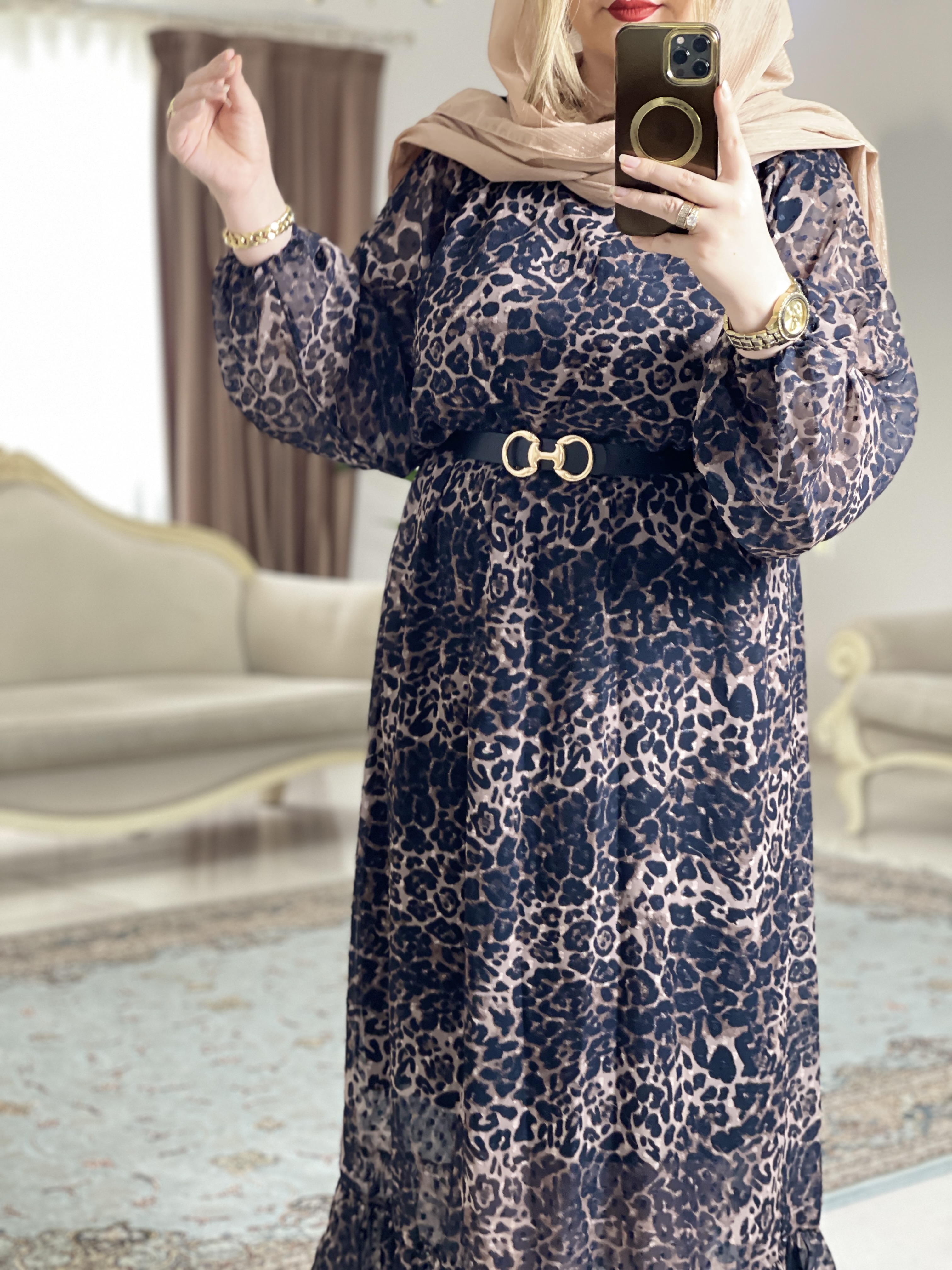 مانتو پیراهن کرپ حریر پلنگی چیندار زنانه