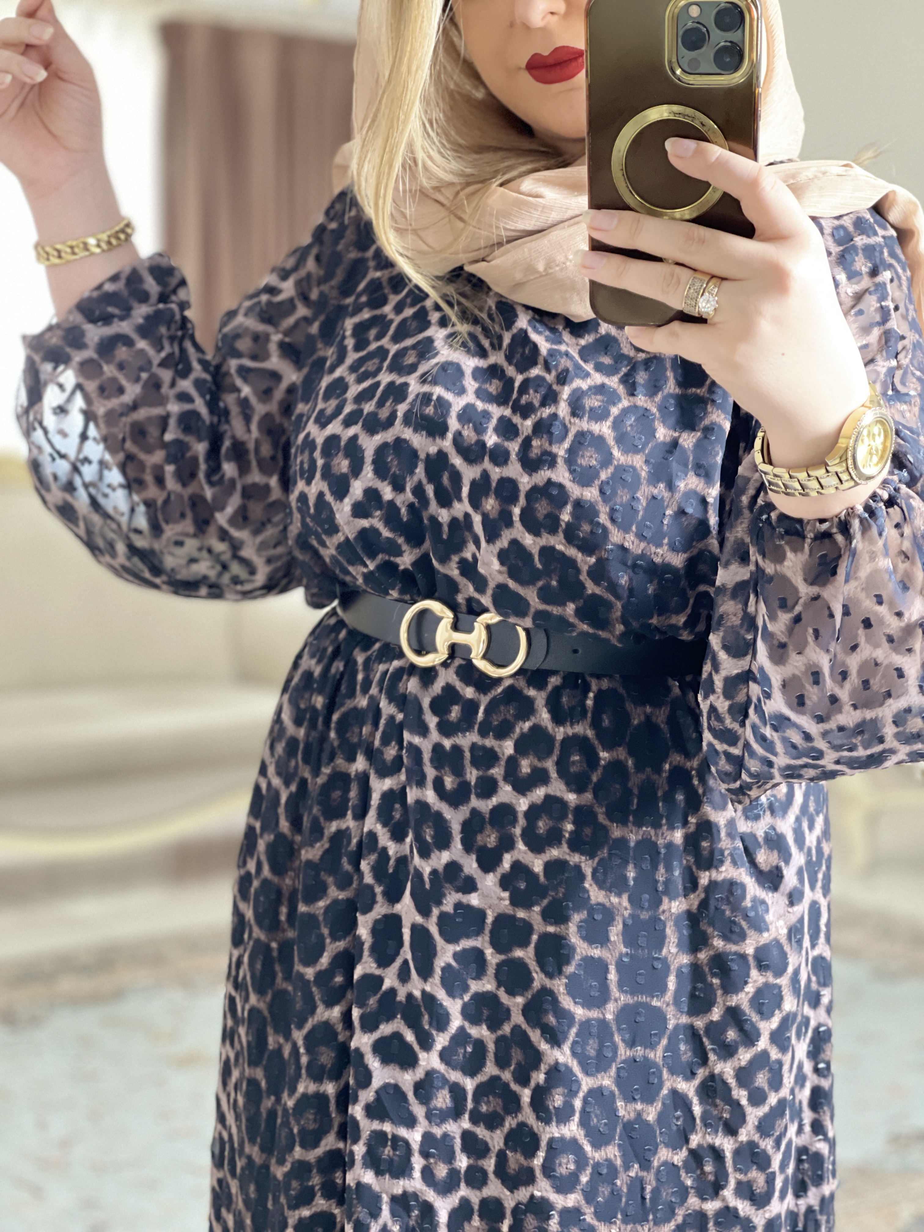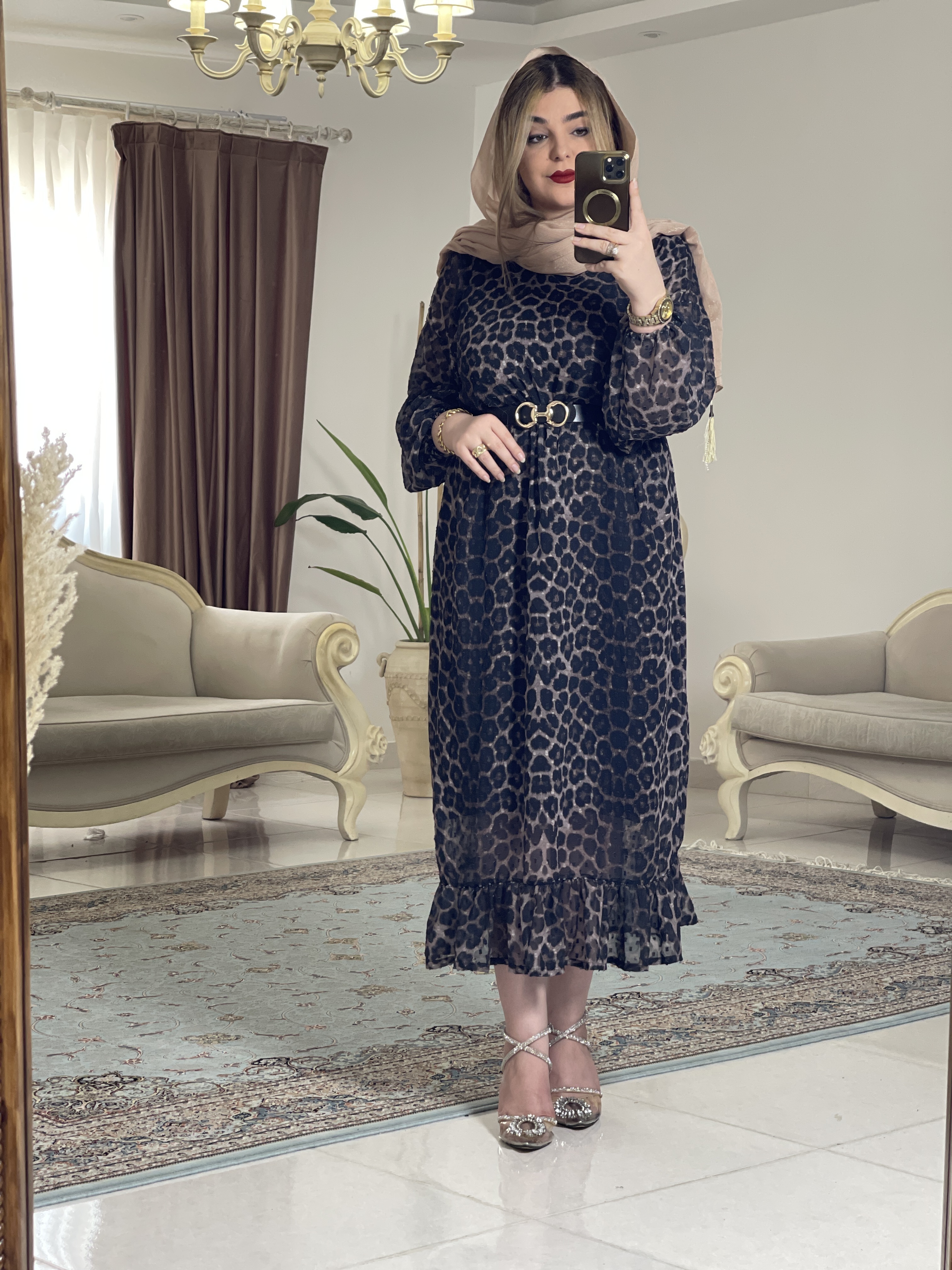 مانتو پیراهن کرپ حریر چیندار پلنگی زنانه